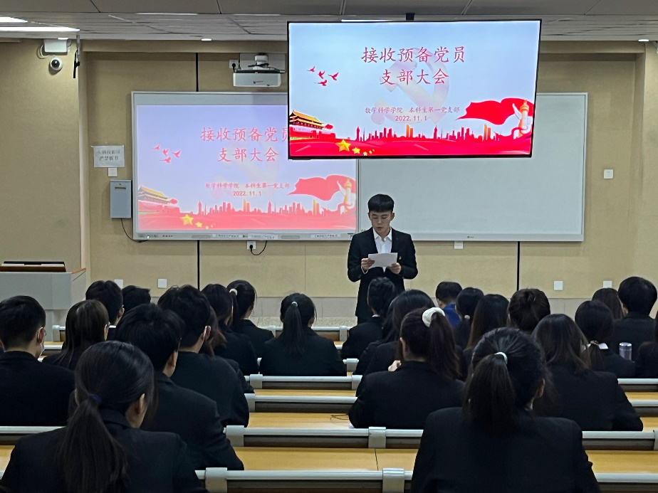 11月1号,数学科学学院各学生党支部分别于11号教学楼A201教室、A304教室召开党员大会。会议由各学生党支部书记主持,支部全体党员及党员发展对象参加此次会议。