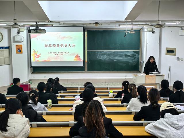 为扩大党的队伍,保持党的生机与活力,11月7日,数学科学学院本科生第二党支部于11号教学楼C310教室召开接收预备党员大会。会议分别由第二党支部书记张琦主持,支部全体党员参加。