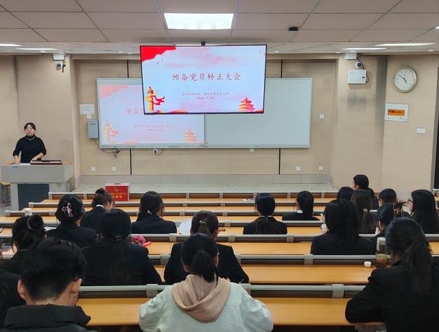 11月21日,数学科学学院本科生第二党支部于11号教学楼C304教室召开预备党员转正大会,会议由第二党支部书记张琦主持,支部全体党员参加。