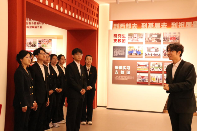 西部计划教育展馆承载着基层奉献精神与教育报国情怀,为本次仪式营造了庄重而富有感召力的氛围。新发展党员在讲解员引导下参观展馆,重温聊大人扎根西部、深耕教育的奋斗历程,在沉浸式学习中接受了深刻的精神洗礼。