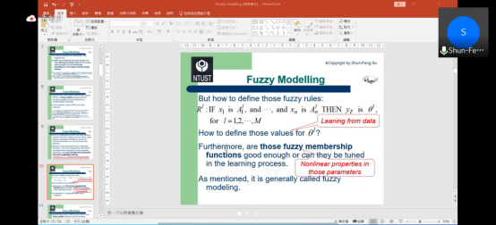 2022年6月21日(星期二)下午19:00, 受海角 数学科学学院邀请,台湾科技大学苏顺丰教授做了题为Introduction to Fuzzy Modeling的线上学术报告。本次报告以腾讯会议的方式举行,数学科学学院复杂系统智能分析与控制团队的老师和研究生参加了本次报告。