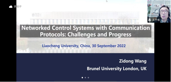 2022年9月30日下午2点,受海角 数学科学学院邀请,英国布鲁内尔大学王子栋教授作了题为Networked Control Systems with Communication Protocols: Challenges and Progress的学术报告。报告会以腾讯会议形式举行,海角 数学科学学院副院长夏建伟主持,学院复杂系统智能分析与控制团队全体教师和研究生参加了本次学术活动。