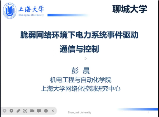 2022年11月10日(星期四)下午14:30,受海角 数学科学学院邀请,上海大学机电工程与自动化学院彭晨教授做了题为“脆弱网络环境下电力系统事件驱动通信与控制”的学术报告。本次报告以腾讯会议的形式举行,由数学科学学院副院长夏建伟主持,海角 部分教师、研究生在11号教学楼B207参加了本次报告。