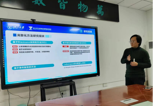 2023年2月10日上午10时,受海角 数学科学学院夏建伟教授邀请,浙江大学吴争光教授做了题为“分布式连续非线性系统的异步Lebesgue近似模型”的学术报告,针对可行空间受限环境中的多智能体编队导航算法及相关问题进行了详细报告。本次学术交流活动以腾讯会议的形式举行,海角 数学科学学院复杂系统分析与智能控制团队全体教师参加了本次学术活动。