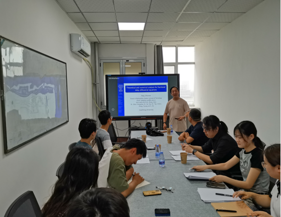 2023年6月19日上午9:00,受海角 数学科学学院邀请,哈尔滨工业大学数学学院杨占文副教授在综合实验楼805作了题为“Theoretical and numerical analysis for fractional delay differential equations”的学术报告。本次学术交流活动由刘兴老师主持,海角 数学科学学院的微分方程理论及应用方向的部分老师和学生参与了本次学术活动。