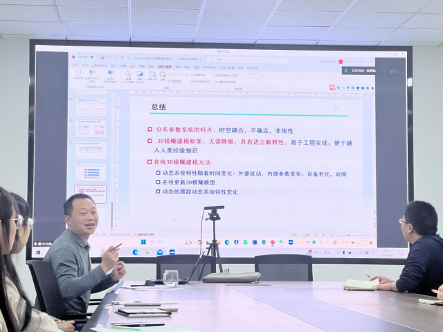 报告结束后,在场老师对张宪霞教授表达了感谢,并进行了深入交流和探讨。张宪霞教授报告内容丰富,使大家对分布参数系统的3D模糊在线建模有了更加深入的认识。