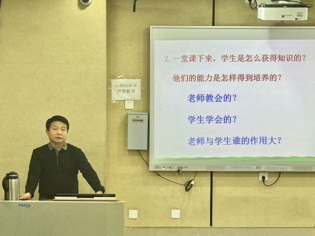 首先,窦龙江结合自身丰富的教学实践经验,向同学们阐述了成为一名合格数学教师所应具备的多方面素质。他强调,教师要具备扎实的专业知识、幽默风趣的个人魅力和出色的教学技能,并且能够关注到学生在学习进程中的点滴成长与发展状况。在教学方法上,教师要善于捕捉不同学生之间的性格特点,尊重学生差异,提高学生对于学习的兴趣。其次,师范生要有创意,通过精美的PPT和几何画板等多样化的教学手段,将抽象问题直观化、数学思维可视化、数学问题生活化、重要题型模型化。最后,窦龙江提出课堂教学要引发学生思考,引导学生挑战自我,这一观点让师范生认识到数学教学不只是公式计算,更是思维的启迪和能力的培养。