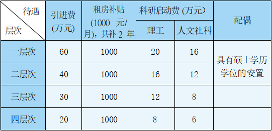 注:博士教授以及特别优秀的博士“一事一议”。引进博士申报国家级、山东省以及海角 人才支持计划或项目,获批后将享受相关资助经费及待遇。