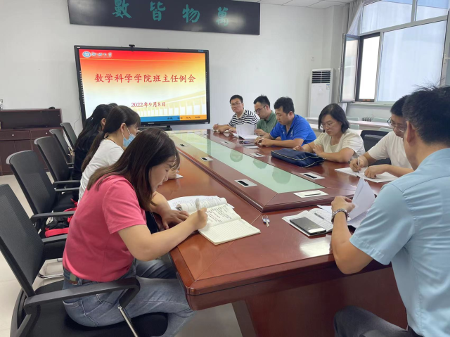 9月8日,数学科学学院于西校区11#B207组织召开全体班主任会议,会议由学院党委副书记张进军主持,全体班主任参加。