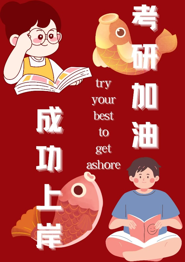 同学们以“考研助力,温情送暖”为主题,采用手绘的方式,发挥丰富的想象力和创造力,为备战考研的学长学姐绘制考研助力图。作品内容丰富,色彩搭配协调,富有创意,不仅表达了同学们对学长学姐真诚温暖的祝福,也包涵了大家对自己未来的期许。经评选,最终选出15份优秀作品进行展示。