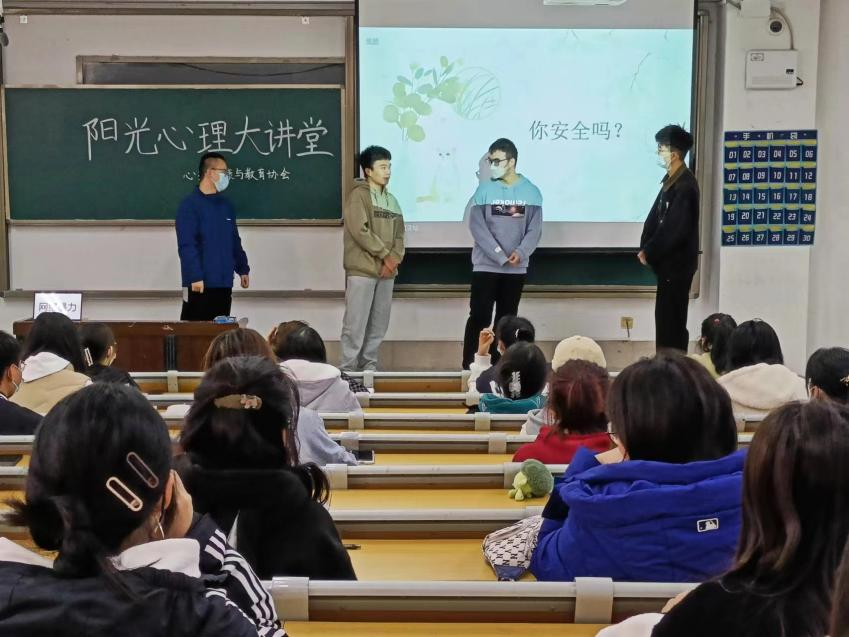 11月6日,数学科学学院于11号教学楼A204组织开展“阳光心理大讲堂”活动,本次活动由教育科学学院研究生张甜甜主讲,2022级部分同学参加。