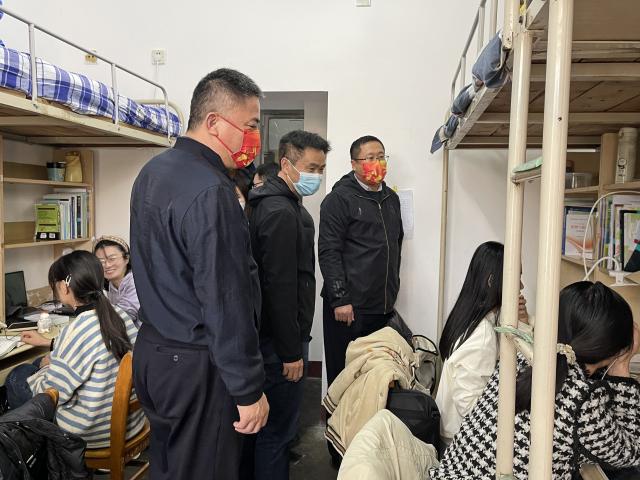 11月20日,数学科学学院党委书记刘德芳,党委副书记、副院长张进军,副院长夏建伟、赵军圣,团委书记岳琳琳,辅导员范海燕、姚三乐深入学生宿舍走访,详细了解同学们线上学习和疫情防控情况。