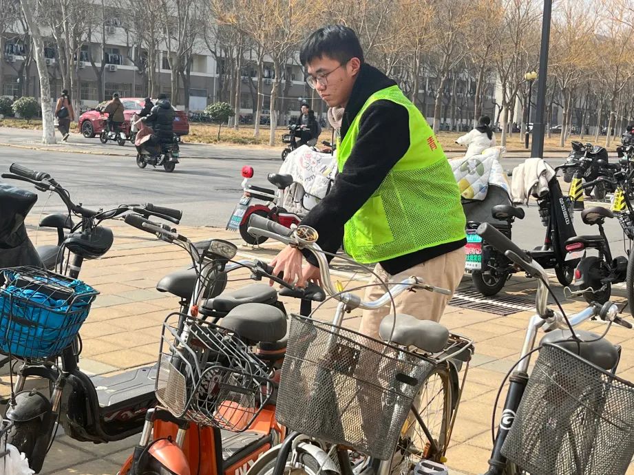 志愿者们准时集合,在就餐高峰时间段之前到达指定地点,合理分工,有序摆放已有车辆,他们将道路两旁摆放不齐的车辆推至规定停放区域,并对停车区进行了统一规范的整理,同时礼貌引导同学们文明骑行、有序停放车辆。他们工作认真积极、待人热情,将车辆摆放的井然有序,在志愿者的努力和感染下,同学们纷纷开始自觉规范停车,校园车辆停放秩序得到改善。