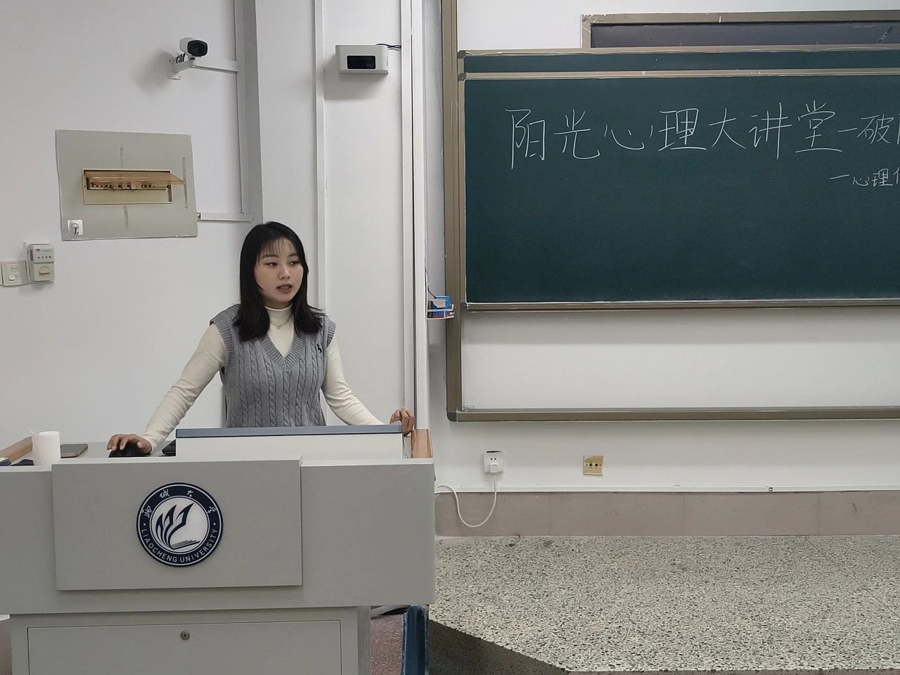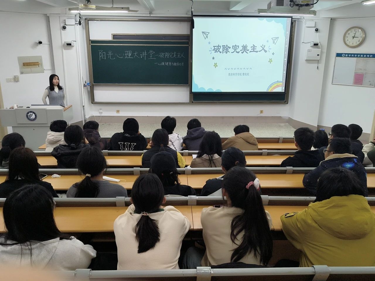 11月18日,数学科学学院于11号教学楼A207举办“阳光心理大讲堂”活动,本次活动由教育科学学院研究生曹欣欣主讲,2023级部分同学参加。