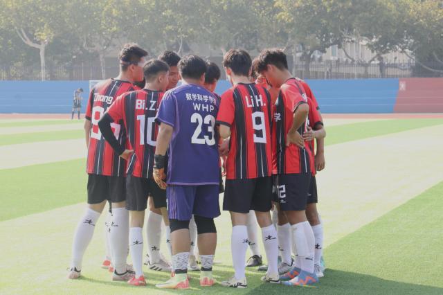 数学科学学院足球队队员身着红色队服,赛前进行充分热身准备,相互鼓励、士气高昂。随着裁判一声哨响,比赛正式拉开帷幕,双方队员迅速进入状态,在绿茵场上展开激烈角逐,他们秉承“友谊第一,比赛第二”的宗旨奋勇拼搏、全力以赴,在上下两场的比赛中调整战略、灵活应对、攻守兼备。队员精湛的脚法、完美的盘带、精彩的配合、巧妙的过人、犀利的射门,每一个动作都引起现场观众一阵阵欢呼与喝彩。比赛过程充分展现了数学科学学院足球队队员的实力和团队精神,他们在比赛中不畏强敌、奋勇拼搏,为胜利而努力奋斗,以实际行动诠释团结拼搏的体育精神。赛后,双方球员相互拥抱、握手致意,共同庆祝这场令人难忘的足球盛宴。