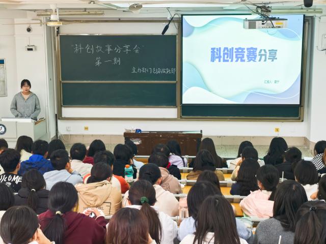 为加强学生对科创赛事的认识,提高创新精神和创业能力,10月24日,数学科学学院于11号教学楼A204开展“科创故事分享会•第一期”活动,商学院智视引领者-禁视系统(R&B)助力中小型机械企业数字化转型项目成员夏宁以及数学科学学院智能化的多档传动与控制系统项目负责人何芃主讲,2023级、2024级部分学生参加。