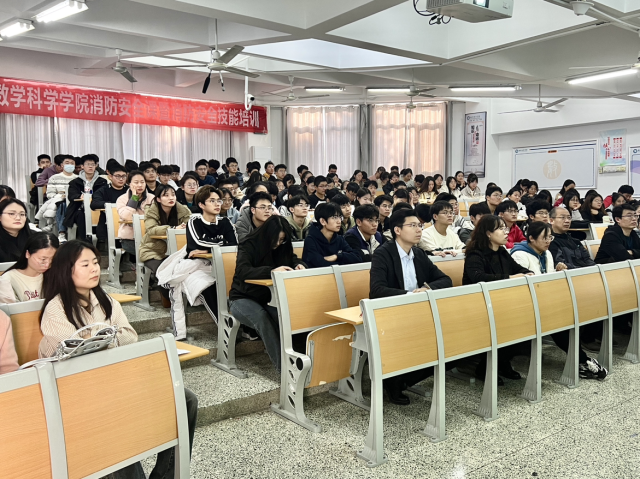 为提高学生应急处理能力,培养学生维护校园消防安全的责任意识,11月7日,数学科学学院于11号教学楼A207教室组织开展消防安全课暨消防安全技能培训,本次活动由学校保卫处马国栋主讲,学院7名系主任、2名辅导员、21名研究生以及2024级全体学生参加。