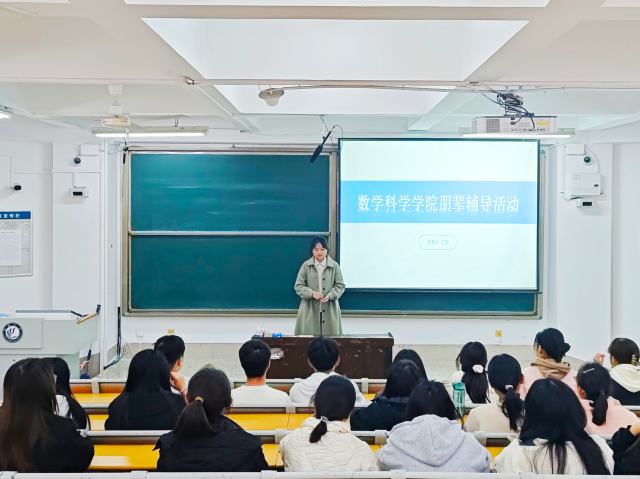 为缓解学生学业压力,加强学生对学习和未来规划的认知,明确未来发展方向,11月10日,数学科学学院于11号楼A204教室开展朋辈辅导活动,由江洁主讲,2023级、2024级部分学生参加。