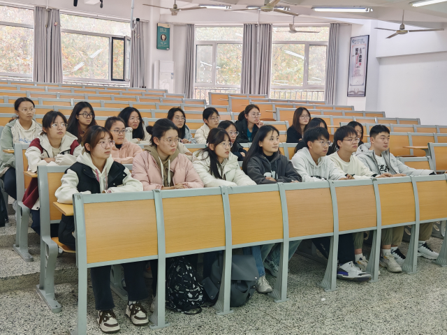 活动伊始,主持人简要阐述此次活动旨在为学生大学生活和学业发展提供指引,围绕学习方法、学习规划以及保研历程三个方面展开分享。学习方法方面,江洁强调系统性学习的重要性,分享做笔记的方法与技巧,鼓励同学们利用碎片化时间进行知识巩固;学习规划方面,她深入剖析不同学科的特点和要求,提出要在每个阶段根据目标调整学习计划,让在场同学对大学的学习路径有了更清晰的认识;保研历程方面,她详细介绍考研的前期准备工作,鼓励大家提高学习成绩,勇于尝试竞赛,同时分享自己参与科研项目的经历,详细讲解保研的申请流程。活动最后的互动环节,同学们积极提问,江洁一一耐心解答,现场气氛热烈融洽。