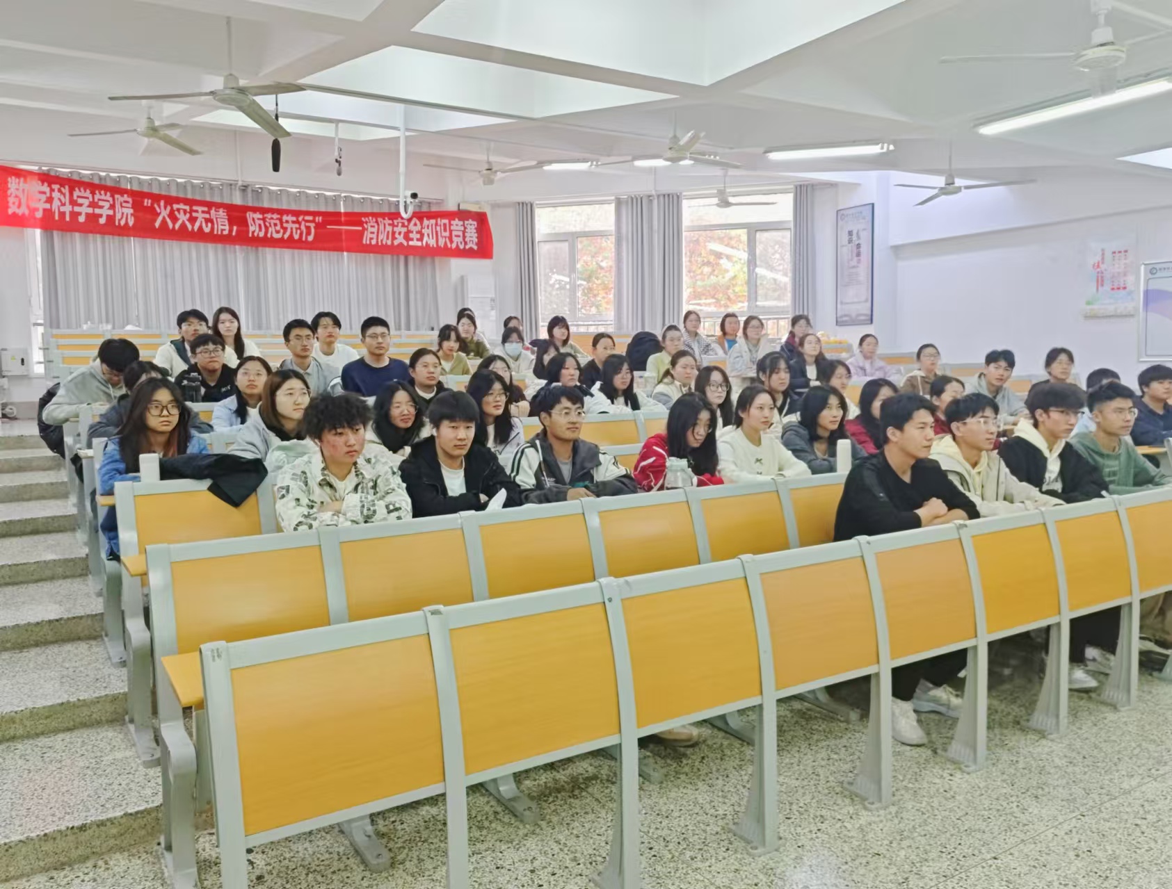 为增强消防知识的普及力度,培养学生良好的安全习惯,11月17日,数学科学学院于11号教学楼A204教室举办“火灾无情,防范先行”消防安全知识竞赛活动,2023级、2024级部分学生参加。