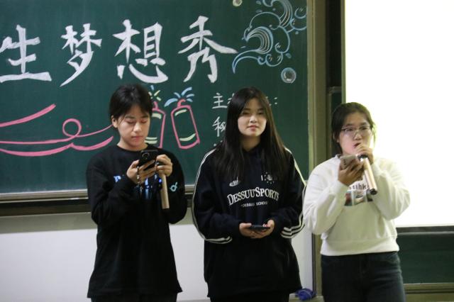 为展示新生青春风采,丰富校园文化生活,11月16日,数学科学学院于11号教学楼A204教室举办“大学生梦想秀”活动,2023级、2024级部分同学参加。
