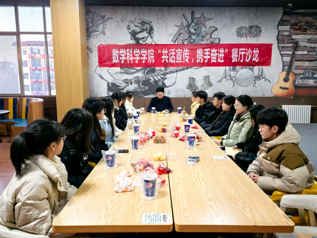 为搭建媒体宣传人员学习交流的平台,提高学生的宣传技能,12月26日,数学科学学院于雅苑餐厅二楼举办“共话宣传,携手共进”餐厅沙龙活动,辅导员王启尧、主席团成员张明慧和部分学生参加。