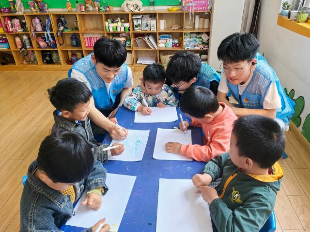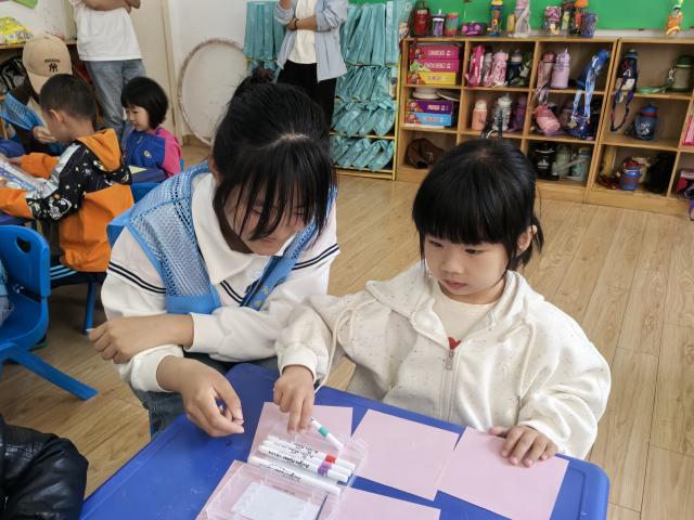 活动共分为四个游戏环节。在“春日数字‘炸弹’”游戏中,孩子们以报数的形式寻找在花朵纸片上被标记为“炸弹”的数字,该游戏需要高度集中注意力,这不仅锻炼孩子们的反应能力,还让他们在游戏中感受到数学的独特魅力;在“听到数字请拍手”游戏中,孩子们努力分辨词语与数字,专注的眼神中透着认真,提高了孩子们的听觉专注力和快速辨别能力;在“春日节气趣谈”环节中,志愿者通过精心制作的PPT和动画,为孩子们打开了春日节气知识的大门,他们积极举手,争抢着回答志愿者的趣味问题,丰富了孩子们关于春日节气的知识,锻炼了他们的思维活跃度和语言表达能力;在“春日海报绘制”环节中,孩子们围绕春天节气主题,用画笔勾勒心中盛景,五彩斑斓的色彩在画纸上晕染,培养了孩子们的想象力、创造力及动手能力。