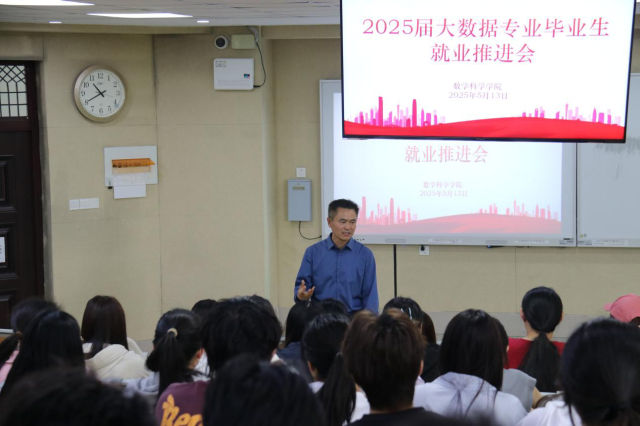 为扎实做好2025届数据科学与大数据技术专业毕业生就业服务工作,帮助毕业生把握就业机遇,5月13日,数学科学学院于11号教学楼C304教室召开毕业生就业推进会。学院党委副书记、副院长张进军及2025届数据科学与大数据技术专业毕业生参会。