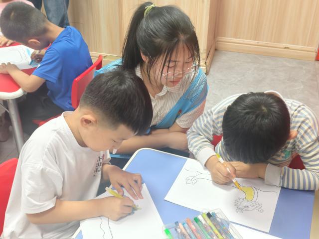 本次端午主题活动围绕端午动画观影、龙舟涂色创作、端午知识竞答三个环节展开。观影环节,志愿者播放精心挑选的动画短片,生动讲述端午习俗的起源,让复杂难懂的知识变得简单易懂,吸引住孩子们的目光;涂色画画环节,志愿者为孩子们分发了空白龙舟画纸、水彩笔和蜡笔等工具。孩子们化身“小小艺术家”,用象征活力的橙红色、深浅不一的蓝色点缀船身,画上五彩祥云、粽子图案,随着色彩不断填满画纸,一艘艘独具个性、充满童趣的龙舟跃然纸上,每一抹色彩都饱含着孩子们对端午的期待与喜欢;趣味问答环节,志愿者提出“端午节除了叫龙舟节,还叫什么?”“粽子的口味主要分为哪两大流派?”等题目,孩子们纷纷举手抢答,现场童声此起彼伏,大家在思维的碰撞中,巩固了端午知识,锻炼了表达能力。