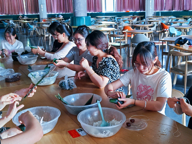 为传承和弘扬中华优秀传统文化,使学生进一步了解端午节的文化底蕴,感受浓厚的节日氛围,5月29日,数学科学学院于湖苑餐厅二楼开展“粽叶飘香五月五,浓情端午共安康”包粽子活动。