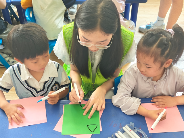 志愿者以生动的PPT为孩子们打开端午节文化的大门,从屈原的爱国故事到“赛龙舟”“包粽子”“挂艾草”等传统习俗,从节气文化到民间传说,他们用通俗易懂的语言和鲜活的图片,让孩子们在趣味互动中深入了解端午节起源与文化内涵。孩子们积极举手提问,现场气氛热烈,传统文化的种子在欢声笑语中悄然播撒。在手工制作环节中,志愿者分发彩色卡纸、安全剪刀、胶水等材料,带领孩子们制作“不倒翁”粽子龙舟,他们化身“小小设计师”,通过裁剪、折叠、粘贴等方式,将一个个“粽子”造型粘贴在龙舟模型上。志愿者们穿梭其间,或协助调整结构,或鼓励创意表达,在他们的耐心指导下,一个个的“粽子龙舟”陆续诞生,孩子们捧着成果兴奋展示,眼中闪烁着创意与成就感的光芒。