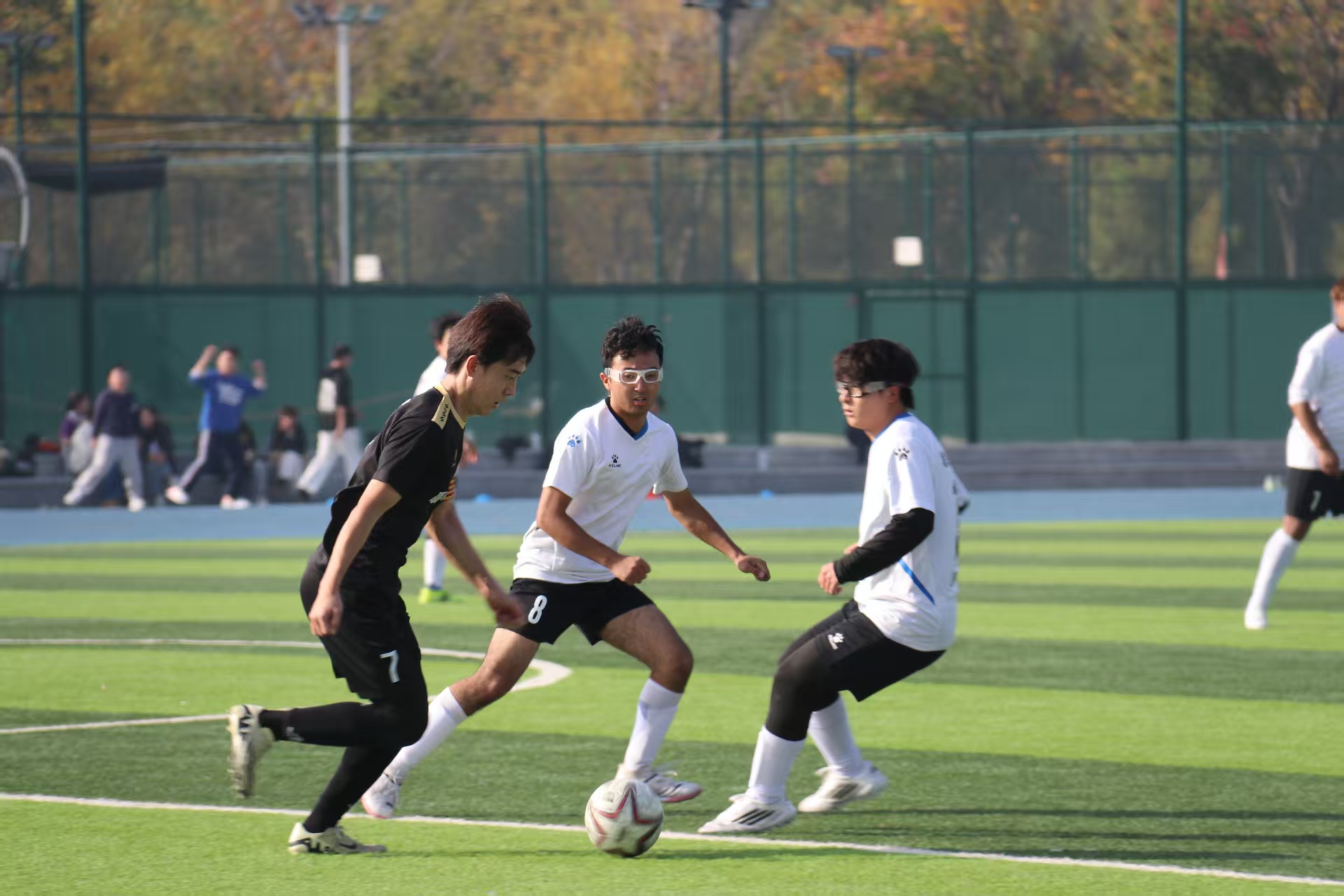 赛前,队员们在草坪上拉伸肢体活动筋骨进行热身运动,眼神中充满了对本场比赛的期待。比赛开始,队员们迅速进入状态,凭借默契的团队配合与精准的战术安排,一次次巧妙传球攻破对手防线,前锋队员脚下生风,带球突破、临门一脚的精彩瞬间点燃全场气氛。看台上,观众们挥舞着加油棒,高举着标语牌,气氛热烈而有序。赛场上,队员们每一次抢断都凝聚着专注与力量,每一次射门都闪耀着无畏的锋芒,每一次配合都彰显着团队信任。球员们汗洒绿茵,不顾疲惫地奔跑、拼抢,用实际行动诠释着“友谊第一,比赛第二”的体育精神,展现了海角 学子锐意进取、永不言弃的青春风采。