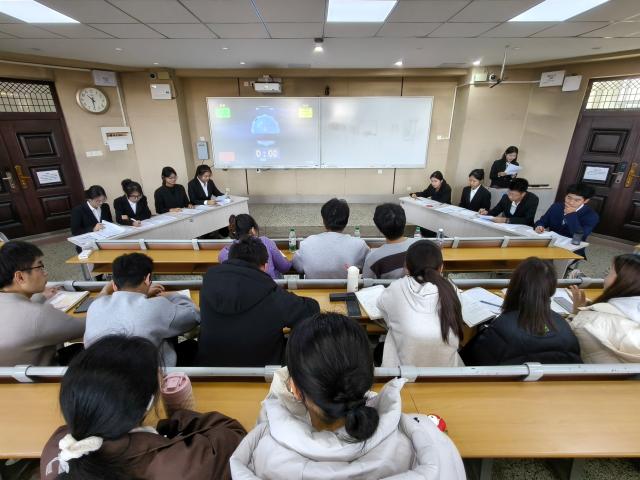 为培养学生思辨性思维,提升学生语言表达能力,凝聚团队协作力量,11月9日,数学科学学院于西校区11号教学楼C304教室举办“肩负时代使命,思辨青春华章”辩论赛复赛,2025级部分学生参加。