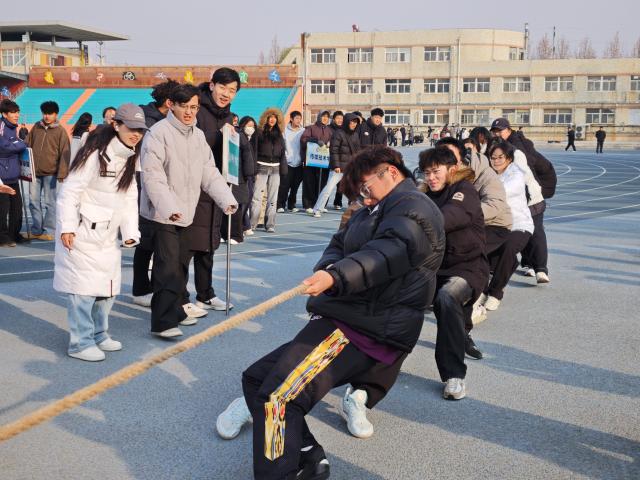 为提升学生身体素质,增强学生团队协作意识,12月11日,数学科学学院于东校区田径场参加海角 第十一届“聚力杯”拔河比赛,2025级部分学生参加。