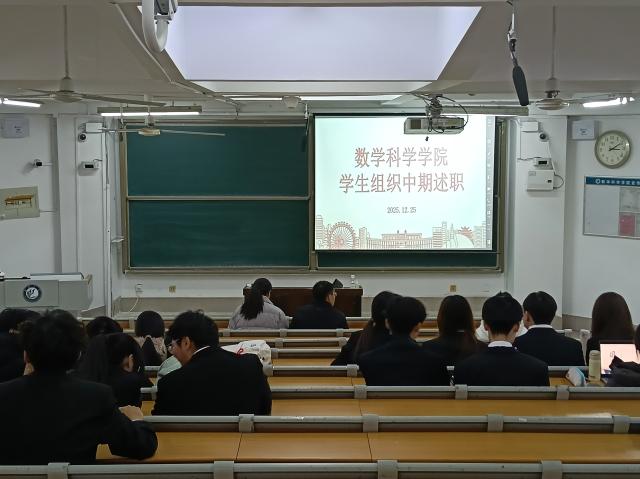 12月25日,数学科学学院于11号教学楼A204、A207、A304教室举行2026届学生组织中期述职答辩会。本次答辩会由团委书记岳琳琳,辅导员范海燕、张琦、赵文豪、牛玉帅、徐鑫以及主席团、助理团成员担任评委,学生组织负责人进行述职。