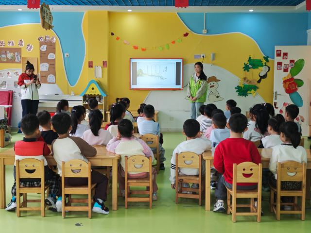 活动伊始,志愿者以趣味十足的“清明小知识”为切入点,引入活动主题,迅速吸引小朋友们的注意力,营造出轻松活泼的氛围。随后,志愿者借助精心制作的PPT,生动形象地向孩子们介绍清明节的起源、传统习俗、经典诗词以及蕴含其中的孝道与感恩文化,进一步增进了孩子们对传统节日的了解。讲解过程中,志愿者设置趣味问答环节,通过互动提问充分调动孩子们的参与热情,激发他们的回答问题积极性。最后,志愿者分发提前准备好的彩纸、画笔等材料,耐心指导小朋友们发挥想象力,亲手制作贴纸背景板并书写清明古诗,将古诗内容与现代手工艺术巧妙结合,在体验动手乐趣的同时,沉浸式感受传统文化魅力,让清明文化在实践中得到传承与弘扬。