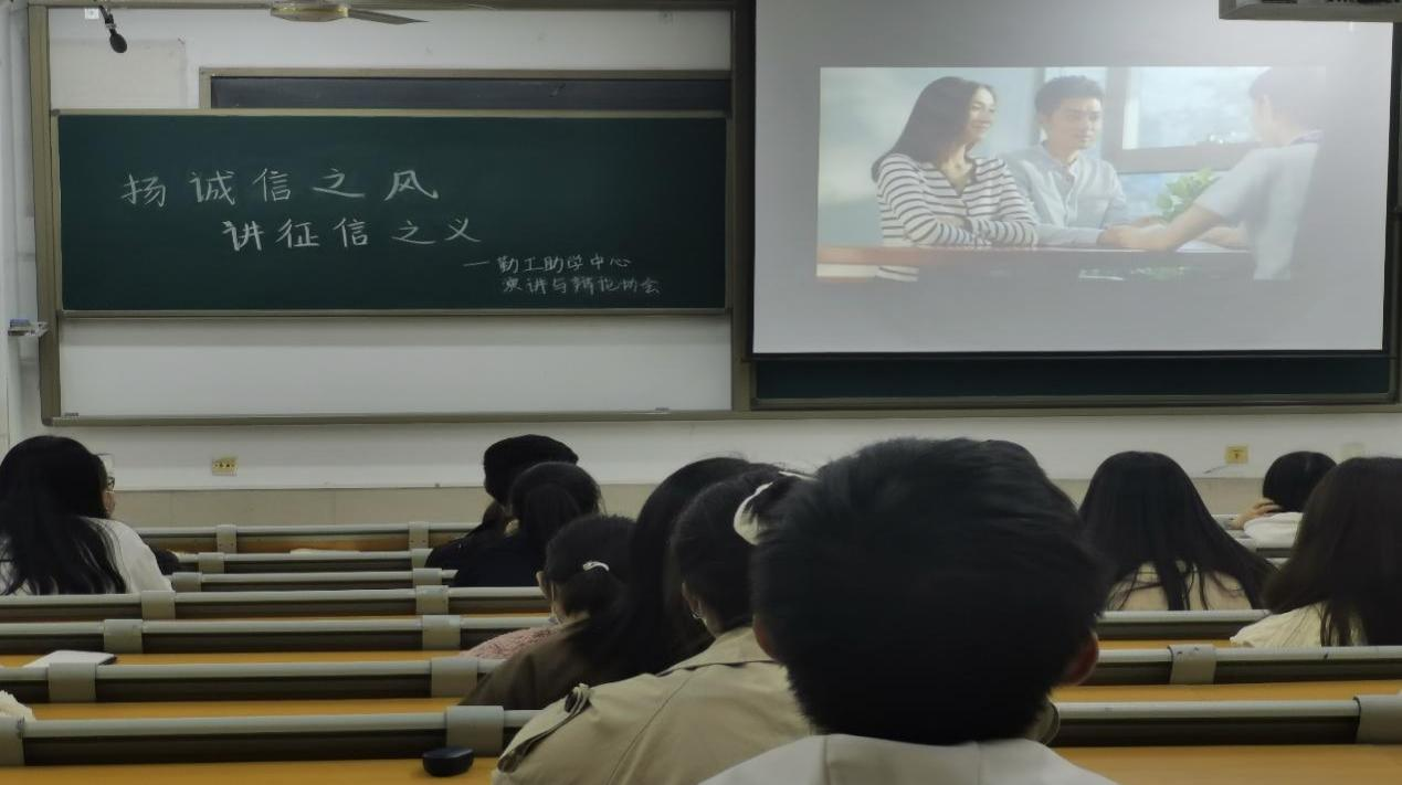 活动期间,同学们一起观看诚信相关视频,进行诚信、征信和信贷知识的普及。在活动结束之际,同学们对演讲进行简单的提问和讨论。