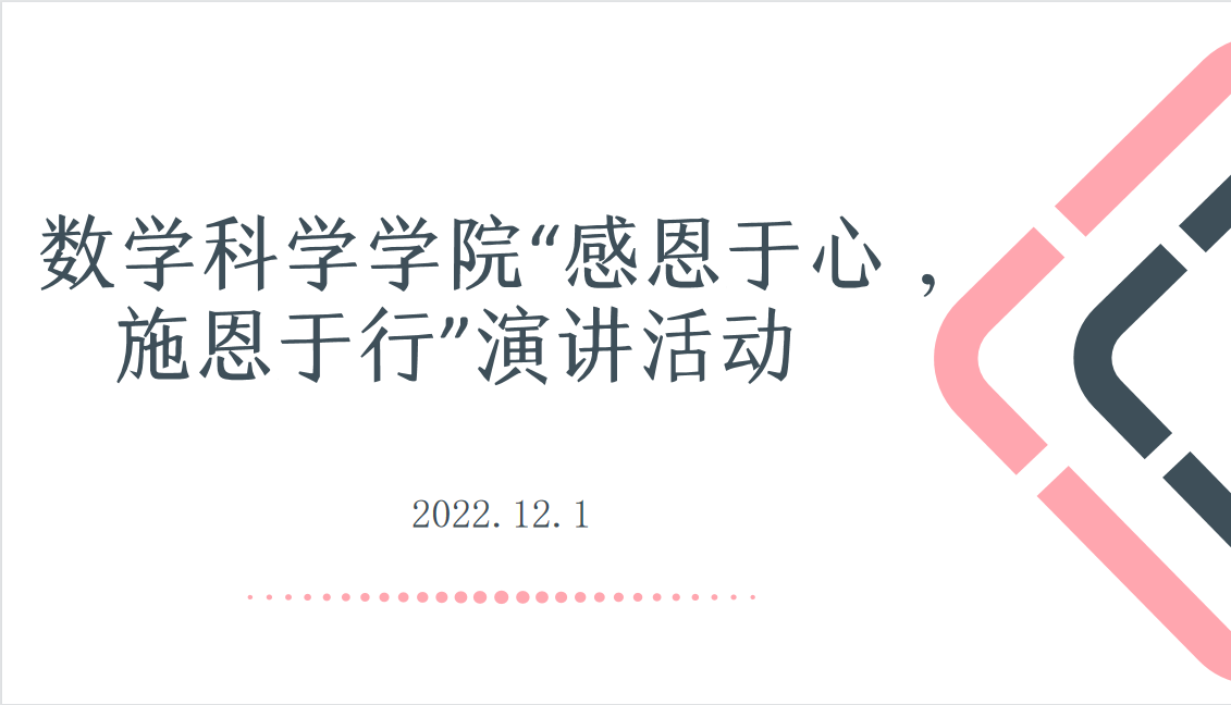 12月1日,数学科学学院于线上举办“感恩于心,施恩于行”演讲活动,2022级部分同学参加。