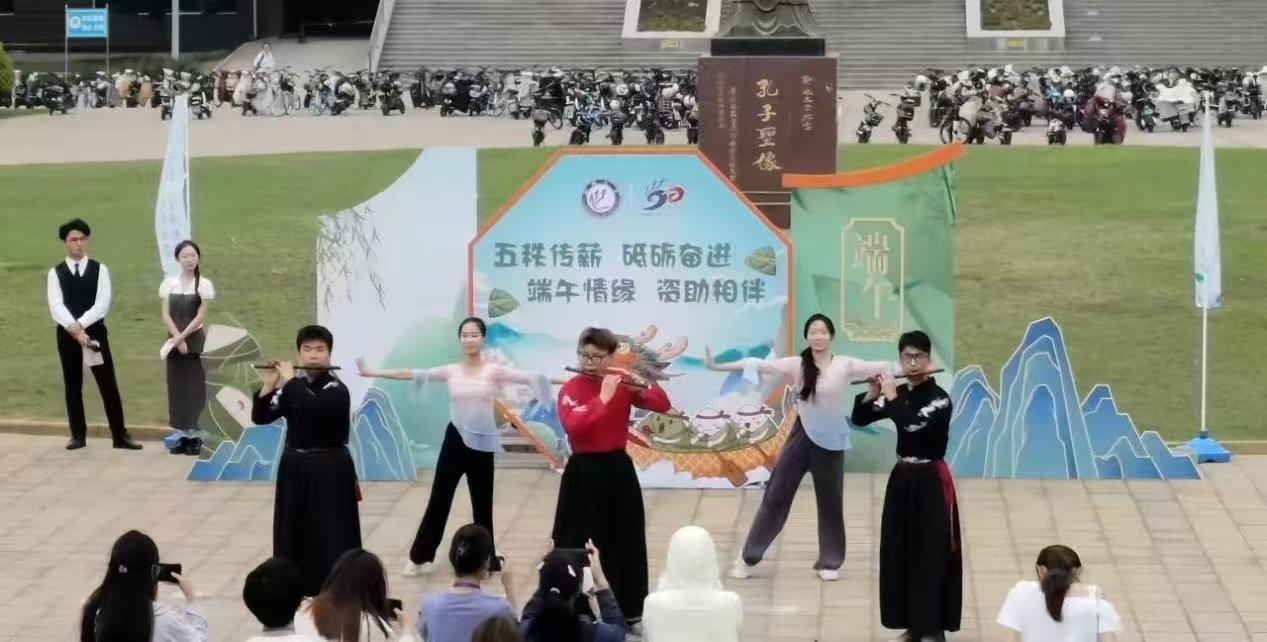 活动现场,歌舞表演活力四射,民族舞与现代舞的旋律里交织着端午故事与青春梦想,歌声悠扬,驱散学子心头的压力阴霾。绘蛋、包粽、编竹艾、绘团扇、制香囊等区域,传统民俗与创意灵感碰撞,同学们以巧思勾勒美好愿景,困难学生们也在其中描绘未来,感受学校关怀。点雄黄、祈愿、飞花令、趣五投等环节,文化传承与竞技欢乐并行,师长的祝福、学子的心愿、诗词的交锋、欢乐的竞技,让现场情谊满溢,文化自信绽放光芒。