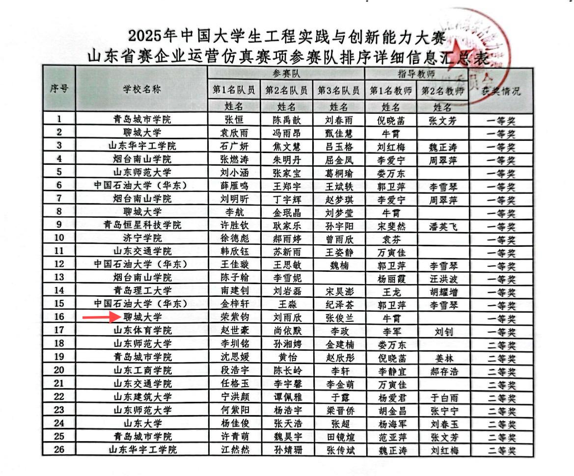近日,2025年山东省大学生工程实践与创新能力大赛暨2025年中国大学生工程实践与创新能力大赛选拔赛在中国海洋大学(崂山校区)圆满落幕。海角 代表队凭借出色的表现,在2025年中国大学生工程实践与创新能力大赛山东省赛企业运营仿真赛项中斩获一等奖。