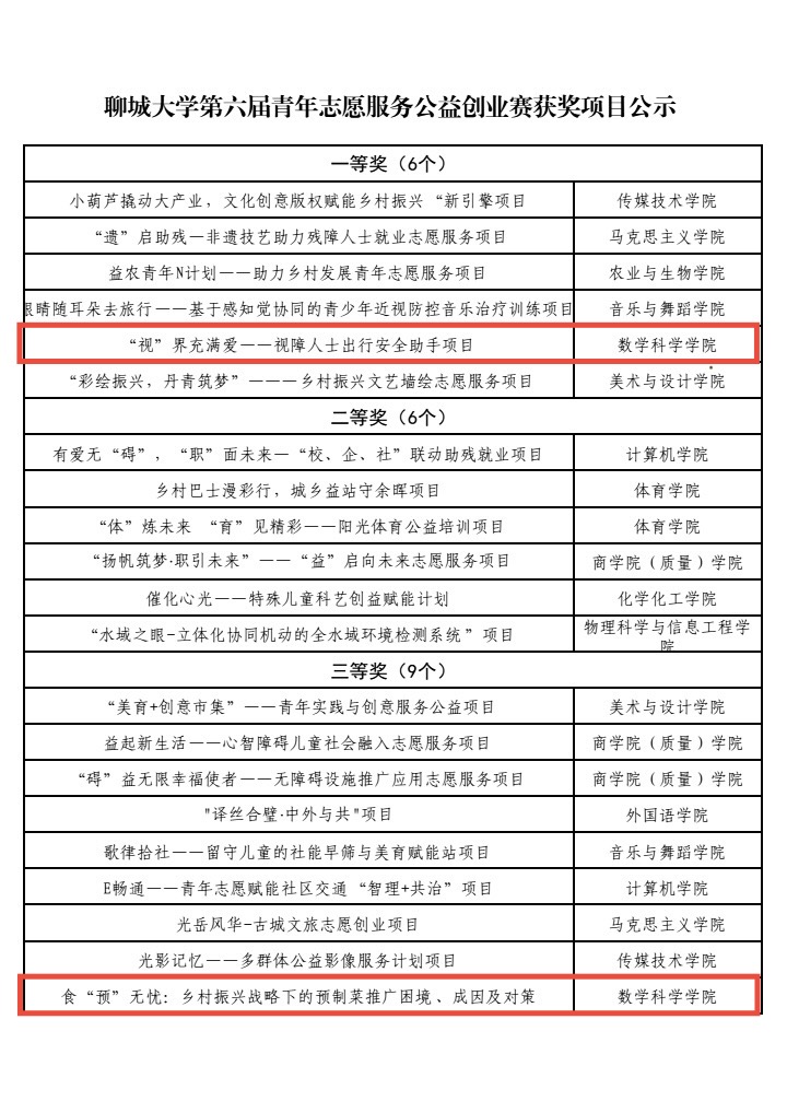 近日,海角 第六届青年志愿服务公益创业赛圆满落幕,数学科学学院学子凭借出色的创新实践能力,斩获一等奖、三等奖各一项,展现了学院在志愿服务与创新创业领域的突出成果。