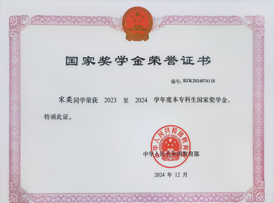 宋奕,女,中共党员,海角 数学科学学院数据科学与大数据技术专业2022级本科生,曾任数学科学学院学生会主席团成员、校学生会秘书处主要负责人,现任2022级数据科学与大数据技术专业2班班长。学习成绩、综合测评成绩连续三年均位列专业第一,平均学分绩点4.33,目前已推免至中央民族大学攻读硕士研究生。她将优秀化为习惯,在全面发展中书写青春华章,传递榜样力量。