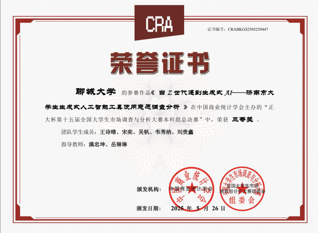 2025.05  “正大杯”第十五届全国大学生市场调查与分析大赛三等奖