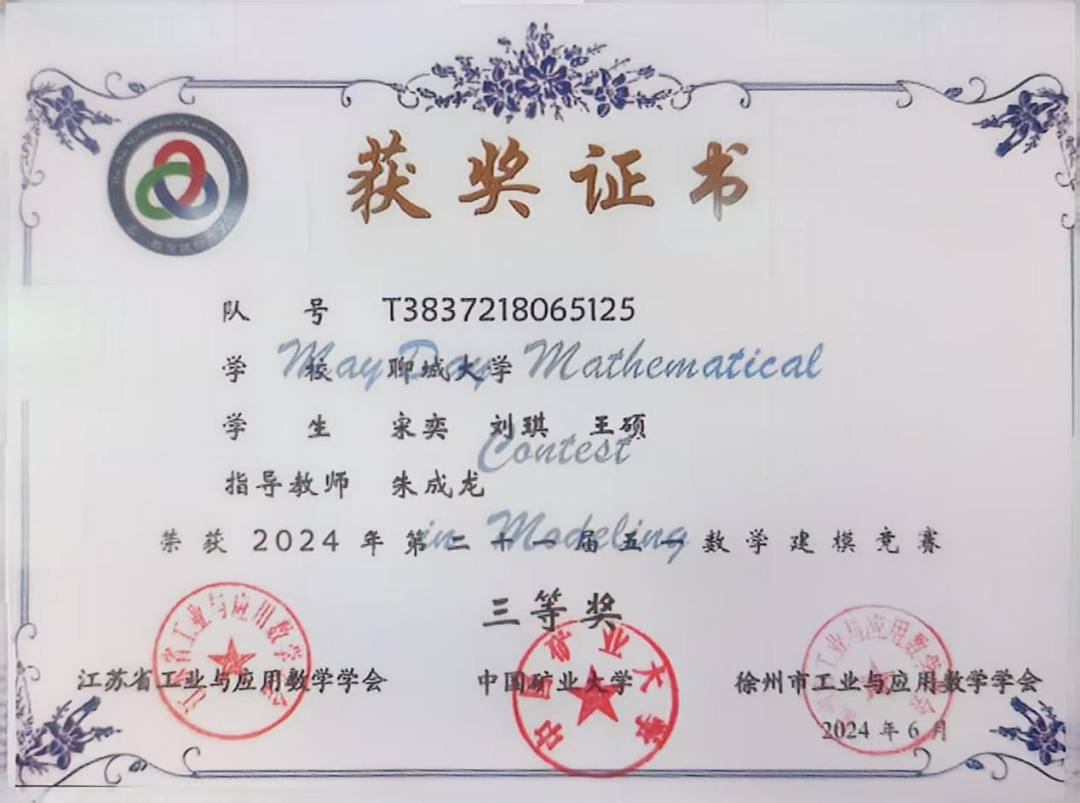 2024.06  2024年第二十一届五一建模竞赛三等奖