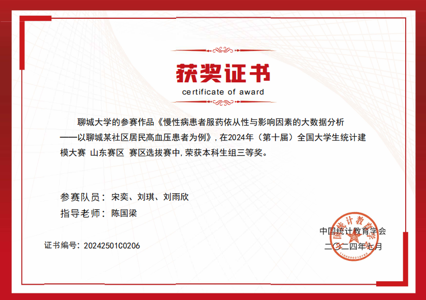 2024.07  2024年(第十届)全国大学生统计建模大赛三等奖