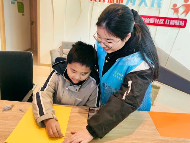 活动伊始,志愿者向小朋友们介绍元旦的起源、意义和传统习俗,激发小朋友们对手工创作的热情,通过与小朋友们进行有趣的互动问答,让他们更加深入地了解元旦节日。随后,他们将准备好的彩纸、胶水、彩带、颜料等手工材料分发给小朋友们,耐心地示范如何利用这些材料制作出漂亮的元旦手工作品。在志愿者的细心指导下,小朋友们慢慢掌握了制作技巧,发挥自己的想象力和创造力,用彩纸折叠出寓意美好的千纸鹤,用彩带编织出绚丽的节日挂饰,用颜料绘制出充满新年气息的贺卡,一件件独具特色的作品,配上一句新年祝福语,表达对新年的美好期许,展现出他们心中对元旦的美好憧憬。在整个过程中,志愿者时刻留意着小朋友们的操作,确保他们在使用剪刀等工具时不会发生危险。最后,志愿者为每一位小朋友与其作品拍摄合照,将这充满欢乐与创意的瞬间定格下来,留下了一份美好的元旦回忆。