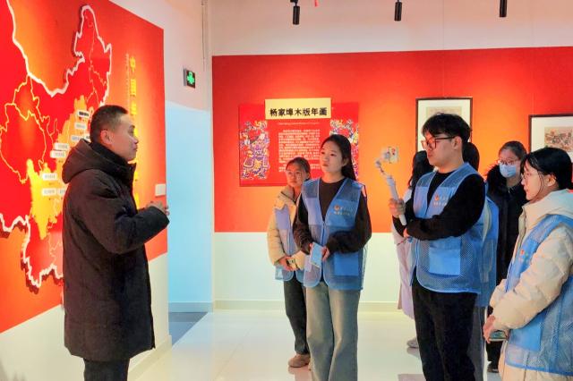 在木版年画非遗传承人吴安军的带领下,实践队参观中滩年画展示馆,了解中国木版年画的主产地、分布特点,以及杨家埠木板年画的发展历程和基本现状。吴安军从绘稿、刻板、印刷三个部分详细讲解了木板年画的制作流程,他希望青年一代多多关注非遗文化,努力将底蕴深厚的中华传统文化发扬光大。