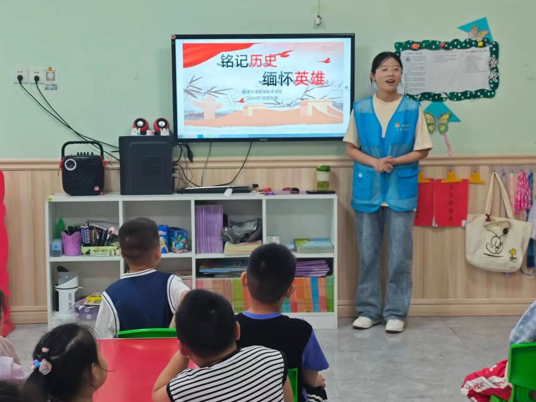 为帮助社区儿童了解英烈精神,培养其爱国情怀,9月29日,数学科学学院2024级1班团支部于翰林苑幼儿园开展“缅怀革命先烈,传承红色基因”社区实践活动。