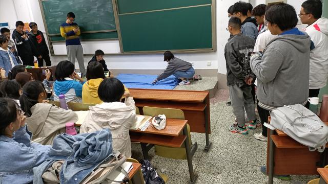 本次活动以“规范宿舍内务,建设文明宿舍”为主题,通过教同学们叠军被的方式展示海角 风采。晚上7点,学姐们准时来到大一新生的教室,为同学们做亲身示范。一捏一折,每一步都十分利落娴熟。学姐不厌其烦地为在场的同学们耐心讲解,也对同学们的每一个问题给出了详实的解答。同时,现场的同学们也对叠军被展现出极大的兴趣,纷纷举起手机拍照、录像。经过学姐们的悉心整理,整洁美观的军被出现在了大家的眼前。学姐们熟练的动作也给在场的同学们留下了深刻的印象。当一床床军被像一个个豆腐块整齐的摆放在大家面前时,同学们爆发出了雷鸣般的掌声,在愉快的氛围中,此次活动圆满结束。
