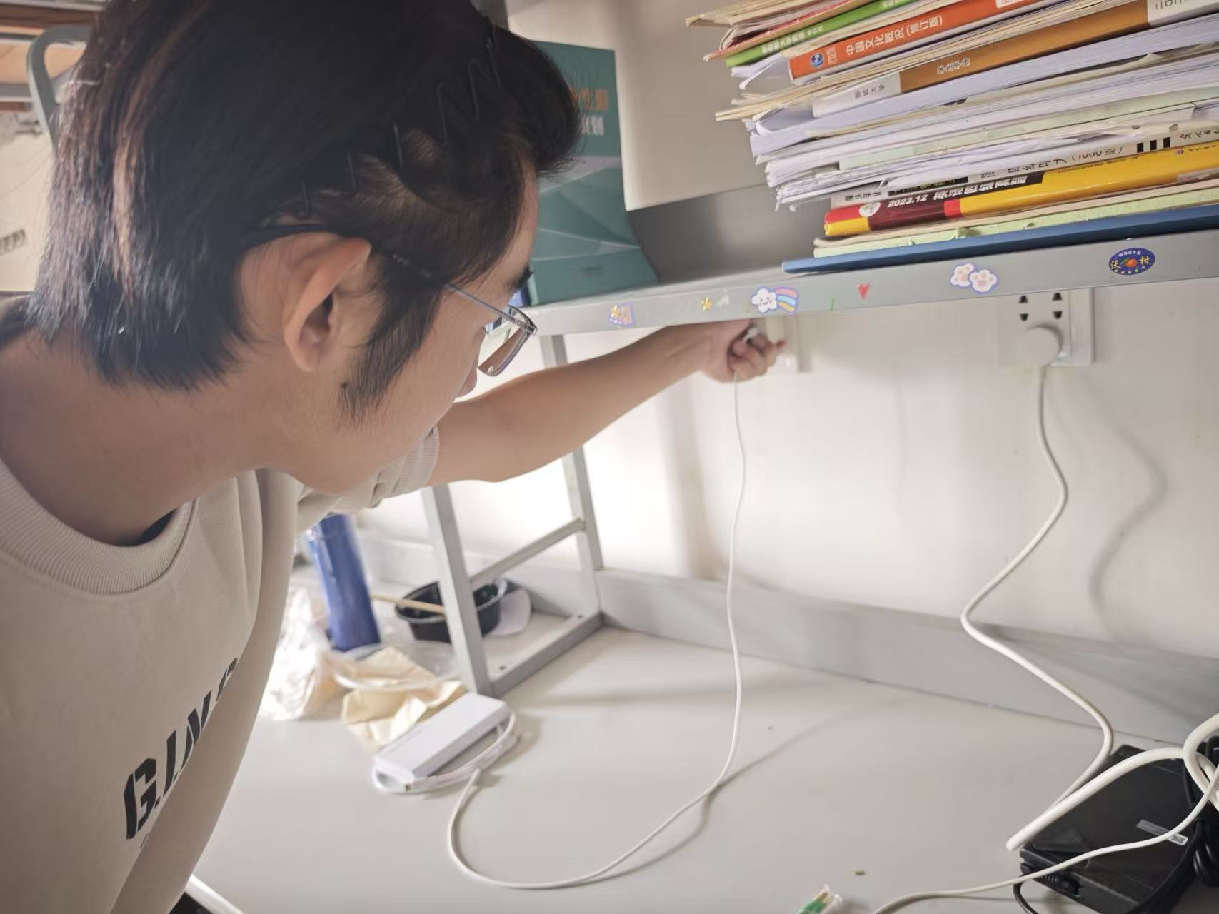 本次专项检查精准聚焦宿舍安全核心风险点,将违规使用大功率电器(如热得快、电暖器、电饭煲等)、私拉乱接电线电缆、插线板违规上床及过载使用、易燃易爆物品存放等突出安全隐患列为重点排查内容。为确保排查无死角、无盲区,宿管中心工作人员以两人为一组,分工协作、责任到人,深入各楼栋宿舍开展全面细致的检查。